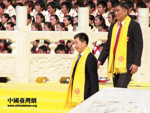 9點55分,大典在中華全國臺灣同胞聯誼會會長梁國揚的主持下正式開始。包括國臺辦副主任葉克東在內的各級領導人和嘉賓先后敬獻花籃,鞠躬致敬。親民黨副主席張昭雄等嘉賓陸續凈手上香。十屆全國人大常委會副委員長、中華炎黃文化研究會會長許嘉璐恭讀《拜祖文》。