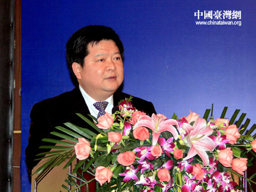 國務院臺灣事務辦公室主任助理龍明彪出席西洽會臺灣中小企業(yè)西部投資懇談會并致辭。(陜西臺辦 張群莉 攝)