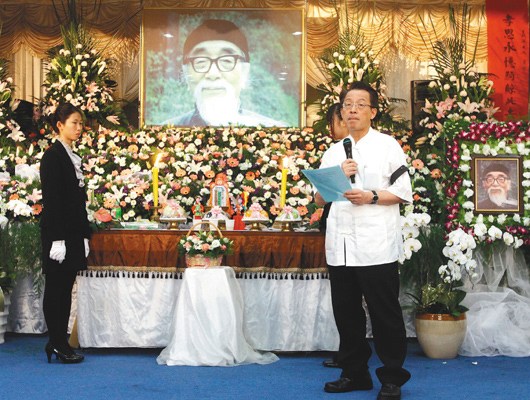經學宗師愛新覺羅·毓鋆10日舉行告別式,毓老的學生劉君祖代表緬懷先師。 聯合報圖