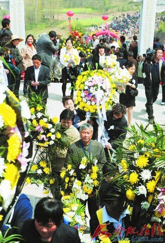 家鄉人民獻上花圈