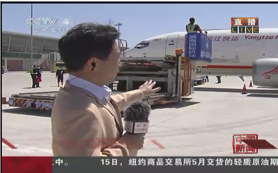 長(zhǎng)鬃山羊“喜洋洋”、“樂(lè)洋洋”以及梅花鹿“繁星”和“點(diǎn)點(diǎn)”抵達(dá)機(jī)場(chǎng)后,被小心的運(yùn)下飛機(jī)。圖片來(lái)源:中央電視臺(tái)