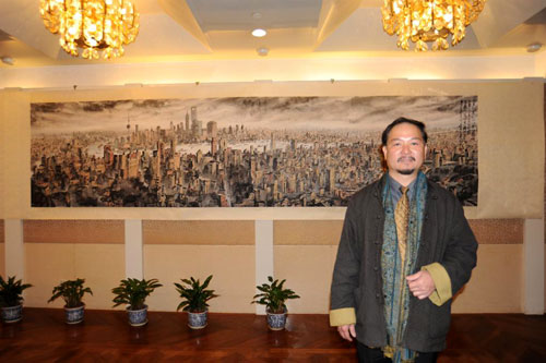 許文融的水墨長卷《臺灣風物圖》高1.8米、長320米,是許文融在19年前、時年28歲及以后數次游歷臺灣山川河湖、城鄉(xiāng)鎮(zhèn)村基礎上,于1992年至1996年間,歷時4年將臺灣的山水人文風物濃縮于320米長的畫卷之中,是當時世界最長的中國水墨巨畫。