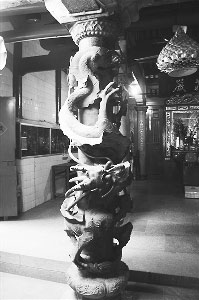 祥芝慈濟宮位于石獅祥芝鎮,宮內一對清朝咸豐六年(1856年)的石雕龍柱是由硬度高、顆粒小的輝綠巖精雕細刻而成。石雕龍柱高2.05米,直徑0.9米,龍口張度19.5厘米,石柱上雙龍盤繞,龍口含珠,雙眼突出,威猛而不失大氣;上雕八仙,栩栩如生,令人贊嘆工匠的鬼斧神工。其中一根石柱上面落款“清咸豐丙辰年冬”,另一根刻著“本里蔡保勝號敬奉”字樣,正是這兩句落款揭開了這對龍柱的身世之謎。