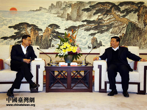 中共山東省委副書記、山東省省長(zhǎng)姜大明會(huì)見海峽交流基金會(huì)副董事長(zhǎng)兼秘書長(zhǎng)高孔廉(圖片來源:山東省臺(tái)辦)