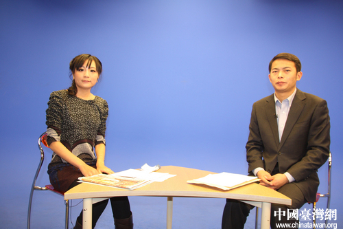 中國宋慶齡基金會聯絡部臺灣處李章程和中國臺灣網主持人董潔在節目錄制現場。(中國臺灣網 段富兵 攝)