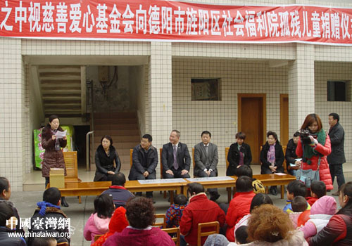 臺(tái)灣中視慈善基金會(huì)向德陽(yáng)旌陽(yáng)區(qū)福利院捐贈(zèng)儀式現(xiàn)場(chǎng)。(德陽(yáng)市臺(tái)辦 甘和林 攝)