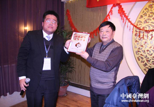 四川省人大常委會副主任、民革四川省委主委王宇坤(右一)在成都會見了來川參訪的臺灣“杰青團”一行。圖為參訪團團長陳長風(fēng)(左一)向王宇坤副主任贈送紀(jì)念牌。(圖片來源:民革四川省委)