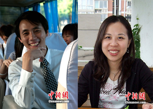 清華大學2010屆碩士研究生張致皓(左)和2010屆本科生俞柔安(右)。圖片來源:中國新聞網