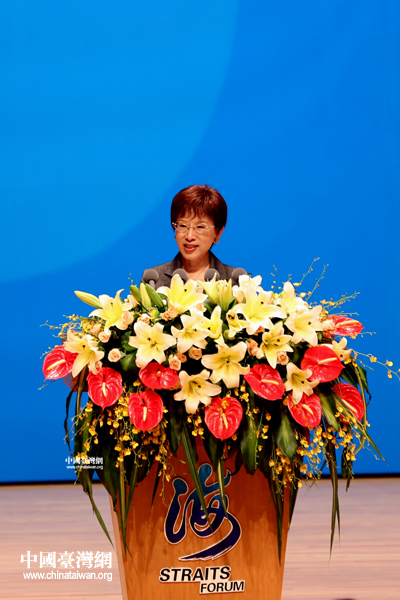 17日,第四屆海峽論壇大會在廈門舉行。圖為中國國民黨副主席洪秀柱在大會上發言。(中國臺灣網 王偉 攝)