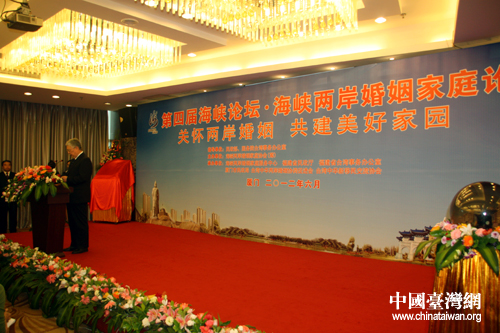 中國臺灣網(wǎng)6月17日廈門消息 17日上午,在民政部和國務(wù)院臺辦的共同指導(dǎo)下,由海峽兩岸婚姻家庭協(xié)會(籌)主辦的首屆海峽兩岸婚姻家庭論壇在福建廈門舉行。來自兩岸的210余名配偶代表圍繞“關(guān)懷兩岸婚姻、共建美好家園”的主題共敘親情、開展交流。(中國臺灣網(wǎng)記者 董子譽(yù))