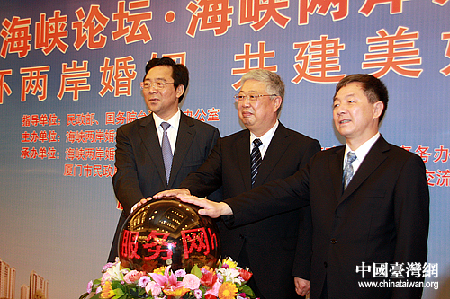 開幕式現(xiàn)場,民政部部長李立國,國務(wù)院臺辦副主任葉克冬,福建省副省長陳榮凱出席論壇。(中國臺灣網(wǎng) 董子譽(yù) 攝)