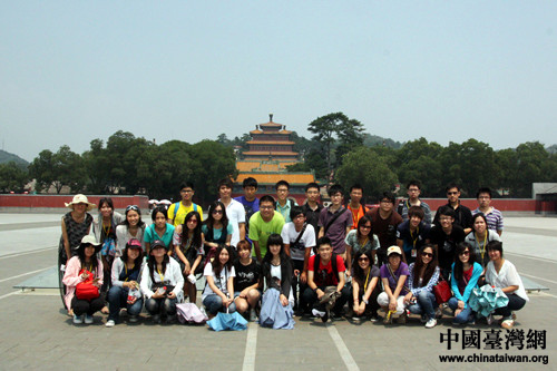 兩岸大學生在普寧寺合影留念。(中國臺灣網(wǎng) 劉承思 攝)