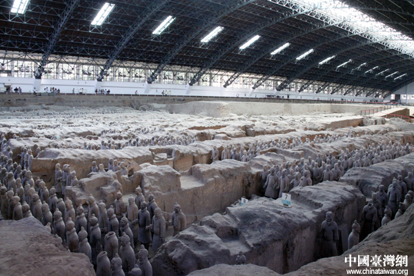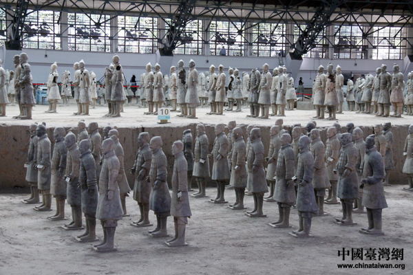 秦始皇陵兵馬俑位于距西安市30多千米的驪山之北,1974年被當(dāng)?shù)剞r(nóng)民發(fā)掘。秦始皇兵馬俑博物館是世界最大的地下軍事博物館,吸引了全世界人的眼光,目前已挖掘出3個(gè)俑坑。(中國(guó)臺(tái)灣網(wǎng)記者 芮益芳)