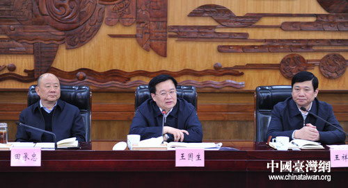副省長田承忠主持座談會。省政府秘書長王祥喜、副秘書長駱新華,省直有關部門負責人出席座談會。(中國臺灣網湖北省臺辦通訊員朱琨)