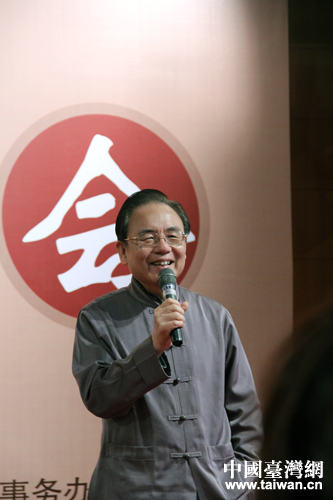 交響南音《陳三五娘》專場音樂會將于28日晚7時30分在國家大劇院音樂廳上演。圖為著名作曲家、上海音樂學院教授何占豪在25日下午舉行的記者會上介紹創作心得。(中國臺灣網 楊麗 攝)