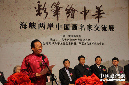 中國臺灣網5月4日北京消息 4日上午,以“同研和諧筆墨,共繪錦繡中華”為主題的“彩筆繪中華”海峽兩岸中國畫名家交流展在中國美術館開幕。