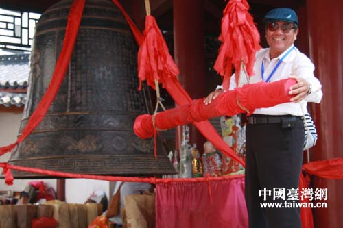 臺灣少數民族同胞敲響吉祥種。(中國臺灣網 雍紫薇 攝)