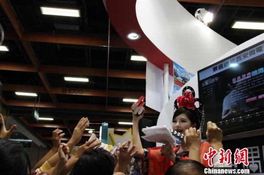 圖為西安市旅游局國內旅游事務處長郝佩銘與民眾互動。 記者 冽瑋 攝