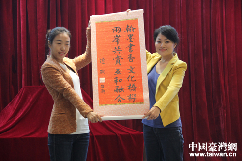 中國國民黨榮譽(yù)主席連戰(zhàn)先生專門為本次座談會題詞:翰墨書香 文化橋梁 兩岸共賞 互和融合。(中國臺灣網(wǎng) 王怡然 攝)