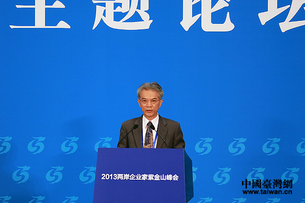 以“兩岸產(chǎn)業(yè)合作新局:挑戰(zhàn)與對策”為主題的2013兩岸企業(yè)家紫金山峰會4日在南京開幕。圖為在5日上午舉行的主題論壇上,臺灣工業(yè)技術(shù)研究院董事長蔡清彥以“科技啟動合作,共創(chuàng)美好未來”為題目進行演講。(中國臺灣網(wǎng) 王偉 攝)