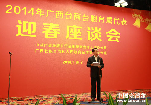 廣西壯族自治區(qū)黨委副書記危朝安在2014年廣西臺(tái)商臺(tái)胞臺(tái)屬代表迎春座談會(huì)上致辭。