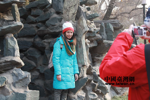 臺灣女學生在特色的林巡山石前合照(中國臺灣網 楊旋 攝)