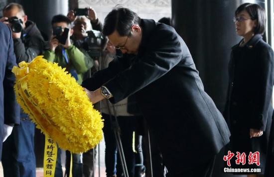 2月12日上午,臺灣方面大陸委員會負責人王郁琦一行拜謁南京中山陵,并在謁陵后發表簡短講話。 中新社發 泱波 攝