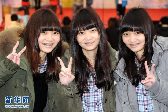 2月15日,三胞胎姊妹李依潺、李依潔、李依潤(從左至右)出席活動。當日,臺北市舉辦第二屆“雙胞胎幸福總動員”活動,415對雙胞胎和三胞胎家庭齊聚一堂,分享成長經驗。 新華社發(fā)(吳景騰 攝)