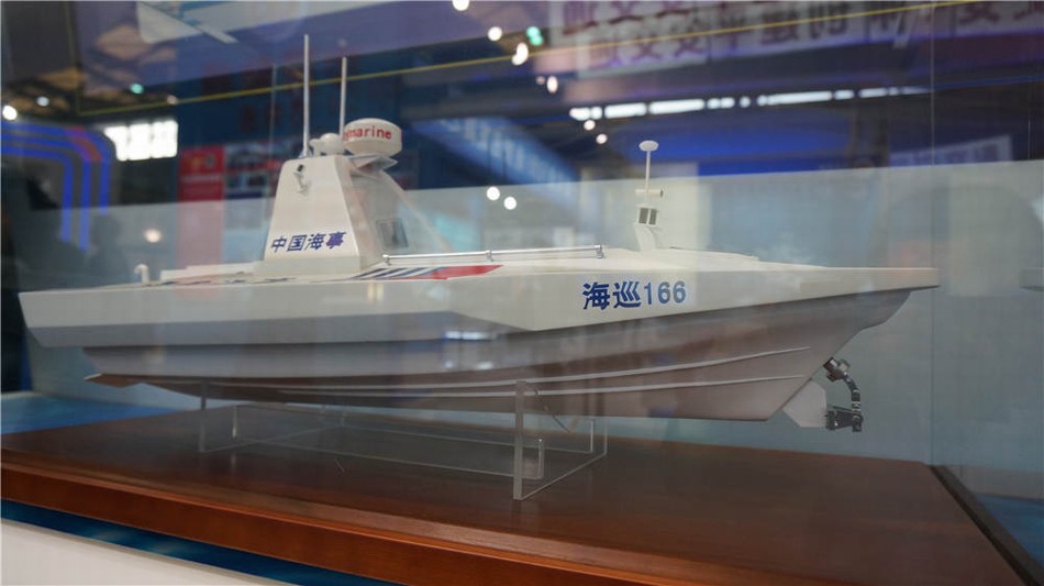 會展上出現的無人巡邏小艇模型(飛揚軍事 同舟滅日 供圖)