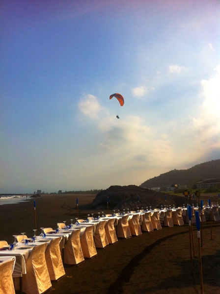 乘飛行傘飛翔到海灘,赴海天盛宴。(何自力 攝)