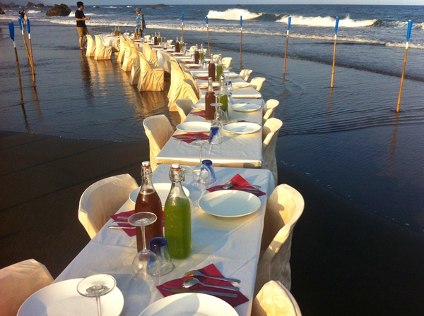 主辦單位特別推出了“幸福餐桌”晚宴。晚宴的地點就在宜蘭礁溪的海灘上,用餐時,游客眼前是蔚藍的太平洋及龜山島,吹著太平洋徐徐的海風,腳踩細軟的沙灘,被海水擁抱,在搖曳的燭光下,享用宜蘭在地農夫用心培育的海陸食材,舉杯邀月,把酒言歡。(何自力 李慧穎 郭麗琨)