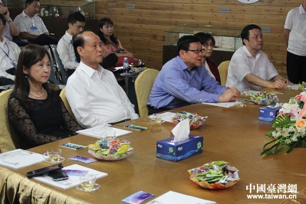 24日下午,海協會會長陳德銘夫婦與海基會董事長林中森夫婦一起在福州馬尾參觀了中國船政文化博物館,圖為一行人觀看《百年船政》紀錄片。(中國臺灣網 張潔 攝)