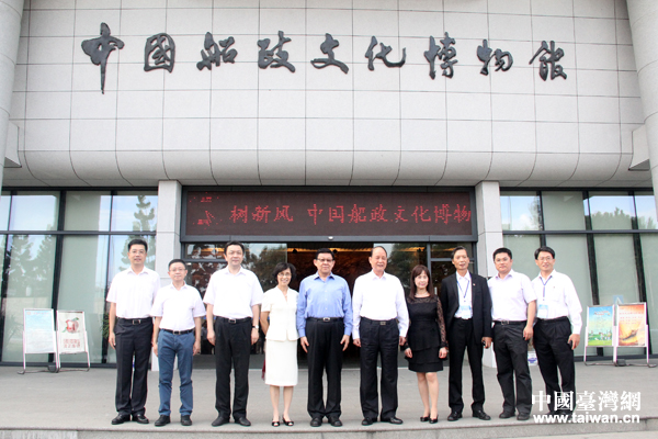 24日下午,海協(xié)會會長陳德銘夫婦與海基會董事長林中森夫婦一起在福州馬尾參觀了中國船政文化博物館,圖為一行人在博物館門口合影留念。(中國臺灣網(wǎng) 張潔 攝)