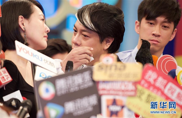 12月2日,蔡康永(中)在《康熙來了》告別記者會上接受訪問時一度哽咽。新華社記者姜克紅攝
