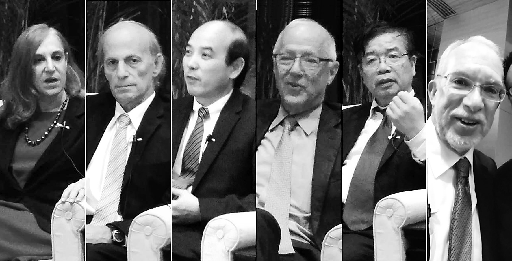 自左至右:美國國際戰(zhàn)略研究中心高級顧問葛來儀、布魯金斯學(xué)會(huì)高級 研究員杰弗里·貝德、中國現(xiàn)代國際關(guān)系研究院副院長袁鵬、美中關(guān)系全國 委員會(huì)會(huì)長斯蒂芬·歐倫斯、上海社會(huì)科學(xué)院副院長黃仁偉、布魯金斯學(xué)會(huì) 高級研究員埃文斯·李維亞。