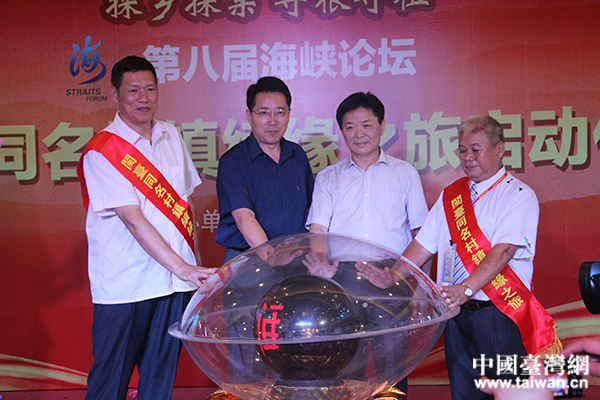 中國臺灣網6月11日廈門訊 (記者 蕪同)在當今世界的人類歷史上有一個奇特的現象:有一個族群,幾百年前為生活所迫,歷經千難萬險跨海去對岸討生活,但仍然日夜思念祖籍地,于是他們就把自已新的居住地命名為故鄉的村鎮名,以示永不忘本,并寄托濃濃的鄉愁;從此,在海峽兩岸出現了600多個相隔大海、但完全一樣的同名村鎮。6月10日晚,“第八屆海峽論壇 閩臺同名村鎮續緣之旅”啟動儀式在廈門舉行。本屆閩臺同名村鎮續緣之旅,邀請了臺灣同名村鎮鄉親380人來福建探親謁祖、修撰族譜、考察交流、敘緣聯誼。閩臺兩地的對接村鎮也由去年的28對,擴大至76對。閩臺同名鄉鎮鄉親和有關人士400多人出席了啟動儀式。