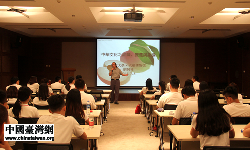 南京大學(xué)歷史學(xué)系教授、中國南京六朝博物館館長胡阿祥以深入淺出的詮釋,解讀中華文化薪火相傳的原因。(中國臺灣網(wǎng)記者 李杰 攝)