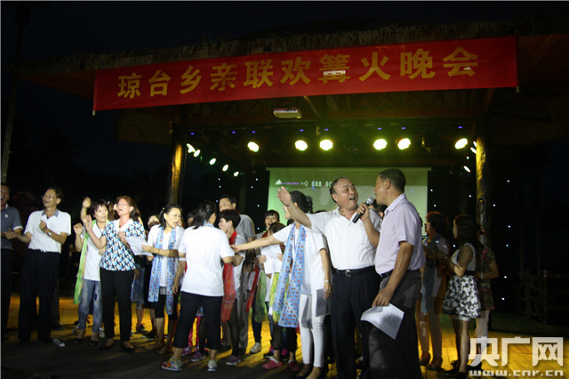海南省臺辦主任劉耿在篝火晚會尾聲致詞時說:“家鄉,就像是頭頂上的天空,我們走到哪里,家鄉就在哪里。家鄉,就像是我們腳下的土地,我們走到哪里,就把我們的愛,奉獻給我們的家鄉……”