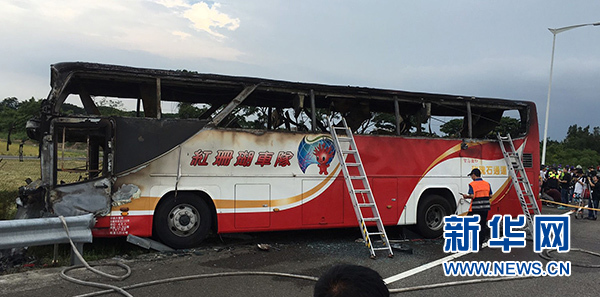 2016年7月19日,臺灣游覽車起火造成26人罹難,包括24名大陸游客。這是7月19日拍攝的事故車輛。新華社發