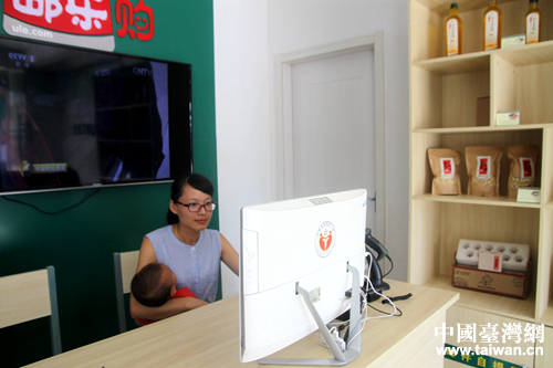 廖奶奶的孫媳婦、鳳崗村“農(nóng)村e(cuò)郵”服務(wù)站站長(zhǎng)曾美玉在查看網(wǎng)店訂單情況。(中國(guó)臺(tái)灣網(wǎng) 李杰 攝)