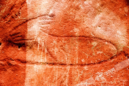 整塊巖畫以點成線的方式鑿刻,簡約的線條中透露出一種生命力和表現力。