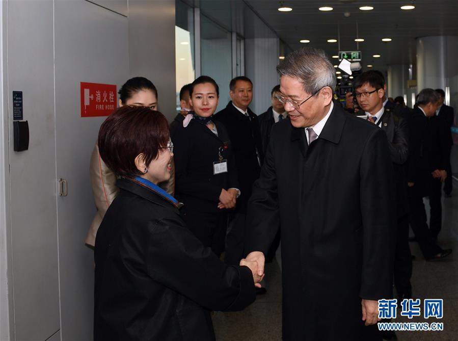 10月31日,中國國民黨主席洪秀柱率領(lǐng)中國國民黨大陸訪問團抵達北京首都機場,開始在京訪問行程。中共中央臺灣工作辦公室主任張志軍前往接機。新華社記者 陳曄華 攝