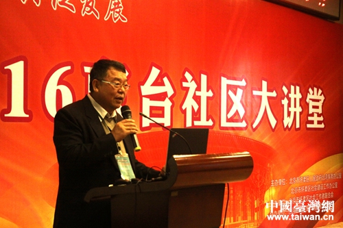 臺南市里長事務促進協會理事長蔡崇明介紹社區營造經驗。(中國臺灣網 陳偉 攝)
