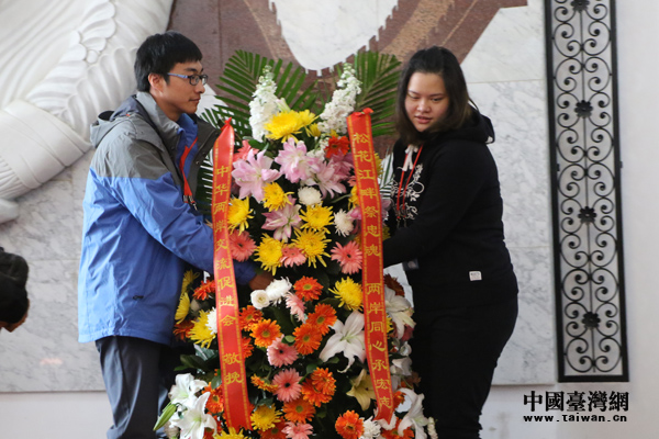 大學生敬獻花籃。(中國臺灣網 朱煉 攝)
