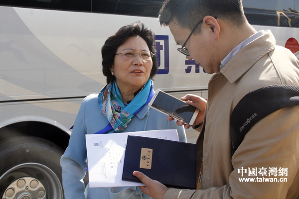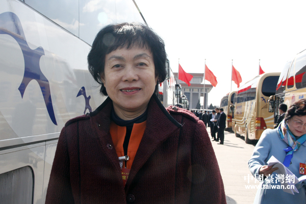 3月5日,在京參加十二屆全國人大五次會議的臺籍代表陳云英接受記者采訪。(中國臺灣網 王怡然 攝)