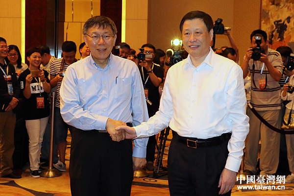 中國臺灣網7月1日上海訊。ㄓ浾 何建峰 扶海濤)7月1日下午,上海市長應勇在浦東香格里拉酒店會見了前來參加上海臺北城市論壇(“雙城論壇”)的臺北市長柯文哲一行。