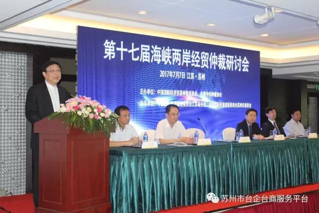 7月7日,由貿仲委和臺灣中華仲裁協會共同主辦的第十七屆海峽兩岸經貿仲裁研討會在蘇州舉行,臺灣中華仲裁協會及來自兩岸法學界、工商界及仲裁機構代表150余人參加了會議,國臺辦投訴協調局局長王剛、蘇州市臺辦主任楊軍出席了會議。