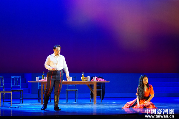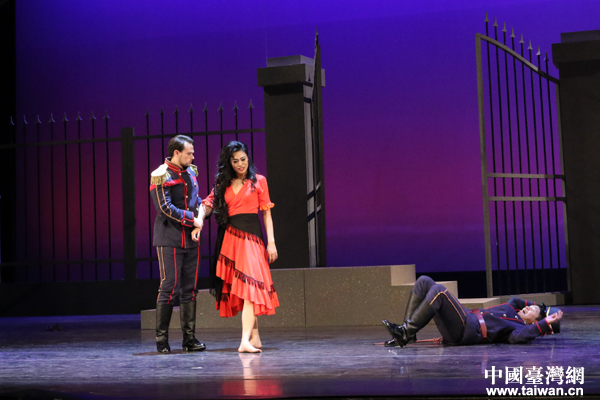 中國臺灣網1月8日訊 2018年1月7日晚,臺中市標志性建筑臺中市歌劇院外人聲鼎沸,燈光璀璨。這座2017年被評為“臺灣建筑特別獎”的歌劇院迎來了一場特殊精彩的演出,由寧波交響樂團和臺灣創世歌劇團聯合制作,中央音樂學院院長俞峰擔任藝術指導,中央音樂學院指揮系教授陳琳執棒,十大女中音歌唱家、中國音樂學院附中青年教師陳冠馥和臺灣著名歌唱家翁若佩領銜主演的全本法語歌劇《卡門》在這里隆重上演。