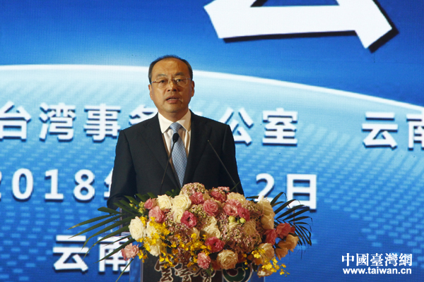 中共云南省委副書記、省人民政府省長(zhǎng)阮成發(fā)出席會(huì)議并致辭。(中國(guó)臺(tái)灣網(wǎng) 王怡然 攝)