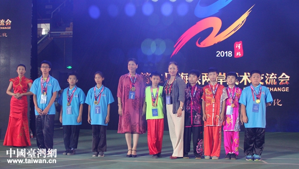 中國(guó)臺(tái)灣網(wǎng)8月20日石家莊訊 (記者 王莉婷)8月19日上午,“第二界海峽兩岸武術(shù)交流會(huì)”之“共揚(yáng)武威”(競(jìng)賽)環(huán)節(jié)在河北石家莊舉行了頒獎(jiǎng)儀式,河北省臺(tái)辦主任王立杰、省臺(tái)辦副主任付輝東、臺(tái)灣中華全球洪門聯(lián)盟總會(huì)長(zhǎng)劉會(huì)進(jìn)等領(lǐng)導(dǎo)和嘉賓出席并頒獎(jiǎng)。